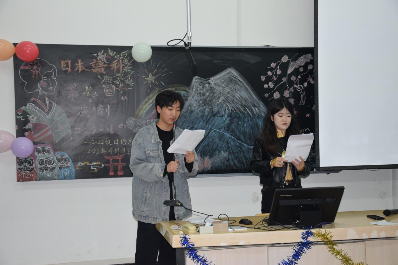 4月9日晚,日语系在11114教室举办第七届戏剧大赛,日语专业师生齐聚一堂,共同见证这一场充满语言魅力与创意火花的舞台盛宴。此次比赛面向2022级学生,大赛不仅是语言学习成果的集中展示,更是一场融合表达力、想象力与团队精神的青春庆典。