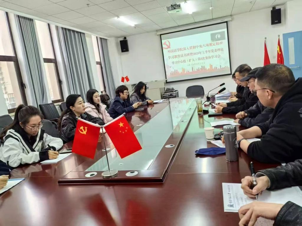 4月30日下午,学院在双创2楼会议室召开外国语学院深入贯彻中央八项规定精神学习教育读书班暨2025年党委理论学习中心组(扩大)第5次集体学习会,学院党委委员、领导班子、各支部书记、全体辅导员、年轻干部参加会议,各班子成员围绕《党的自我革命专题》开展学习交流。会议由党委书记韩强主持。