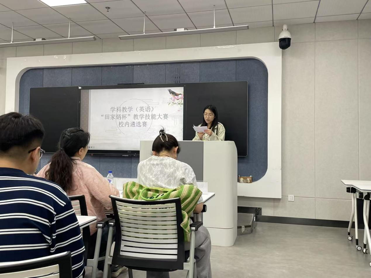 为展示全日制教育硕士学科教学(英语)专业培养成果,促进交流,根据2025 年“田家炳杯”全日制教育硕士专业学位研究生“学科教学(英语)专业”教学技能大赛通知要求,5月8日晚,学院2024级学科教学(英语)专业在11904-2教室举办了“田家炳杯”教学技能大赛校内遴选赛。比赛邀请了刘慧教授、陈雪教授、侯秀杰副教授、张立光副教授、刘昊多副教授、潘雁副教授、胡晓丽副教授担任评委。