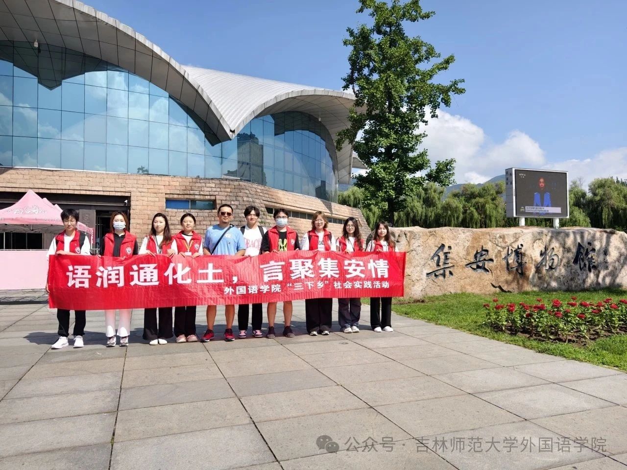 为深入学习贯彻习近平新时代中国特色社会主义思想和党的二十大精神,贯彻落实习近平总书记在听取吉林省委和省政府工作汇报时的重要讲话精神以及给谢依特小学戍边支教西部计划志愿者服务队队员的重要回信精神,近日,由外国语学院师生组成的“三下乡”红色精神主题实践团走进吉林省集安市,通过实地探访、史料研读、双语传播等方式,在红色土地上感悟历史、践行使命。