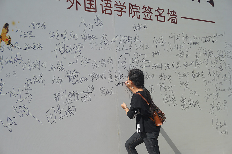 为庆祝bat365平台官网60周年华诞,拉近校友与学院之间的距离,便于校友的一言一行都有深刻记载,抒发对母校的感怀之情,学院特别开展"寻那些年的我们”校友签名留言活动,校友纷纷在签名墙签名留念,并在留言板书写对母校的祝福。