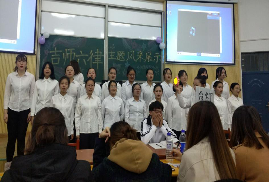 为切实加强学风建设,有效推动“吉师六律”活动进班级,营造良好的文明环境。11月13日晚,外国语学院在6103教室举办“吉师六律”主题诠释大赛,由张铭序、陈宇欣同学担任主持人,2018级全体同学全程参与。