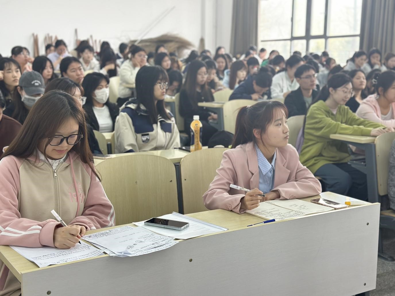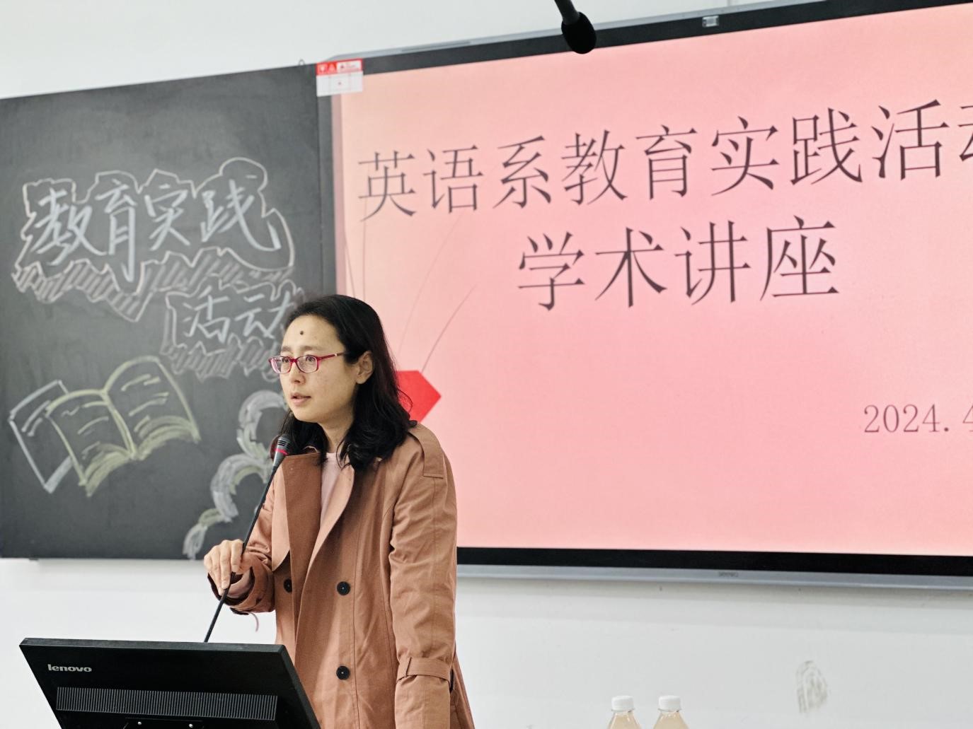 为进一步加强校友与母校之间的交流联络,发挥优秀校友的榜样引领作用,引导在校生树立正确的职业认知, 4月24日下午,英语系在11114教室邀请我院优秀毕业生赵宇飞做题为“亦教亦学,且歌且行”教育实践活动学术讲座,英语系2021级、2022级、2023级专升本学生参加讲座,讲座由英语系主任胡晓丽主持。