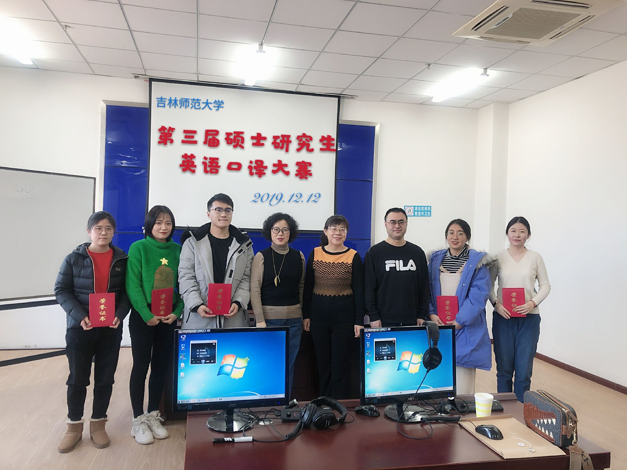 2019年12月12日下午,外国语学院在长春校区研发大厦同声传译教室举办了“bat365平台官网第三届硕士研究生口译大赛”。高卫红副院长、孙桂荣副教授、王健副教授、马岩峰副教授担任翻译赛场评委;2018级全体翻译硕士研究生参加了本次大赛,2019级翻译硕士研究生进行了观摩。