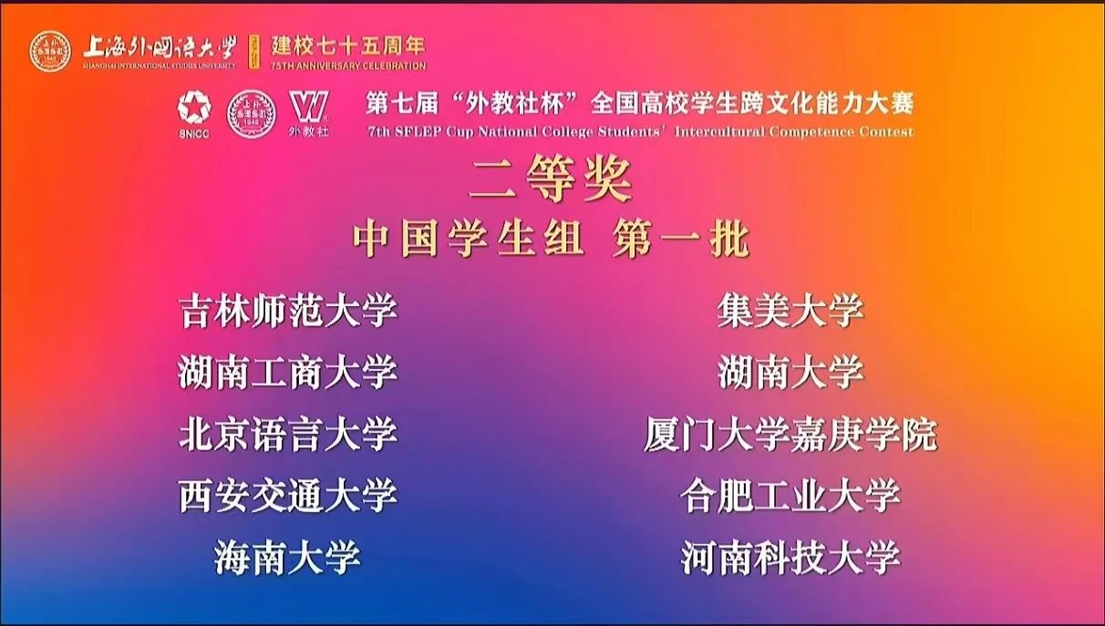 我院学生在第七届“外教社”杯全国高校学生跨文化能力大赛全国决赛总决中荣获二等奖
