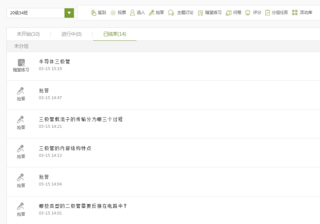 3.丰富直播课堂的教学活动。教师利用学习通丰富的教学活动设计,如签到、抢答、选人、讨论和随堂练习等,提高课堂互动性,增强学生学习的自主能动性。检验学生课堂学习效果,针对错误较多的问题,再重点讲解对应的知识点。