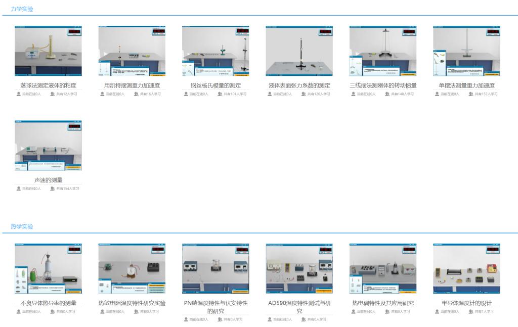 力热实验线下教学分为课前实验预习、课堂实验操作、课后实验报告总结三个教学阶段。线上实验教学存在的主要问题是缺乏实验环境和设备,最关键的实践和动手操作环节无法开展。如何使学生在“云端”实质等效的开展实验课程学习,并最大程度地获得实践体验感,是摆在我们教学团队面前的一道难题。疫情期间学院启动了与科大奥锐公司合作建设的虚拟仿真实验教学平台,为基础物理实验教学提供了极大的支持。力热实验课程依据教学大纲要求,结合虚拟仿真平台开设项目,采取由简入难的策略,制定了线上5周的教学方案及教学安排。