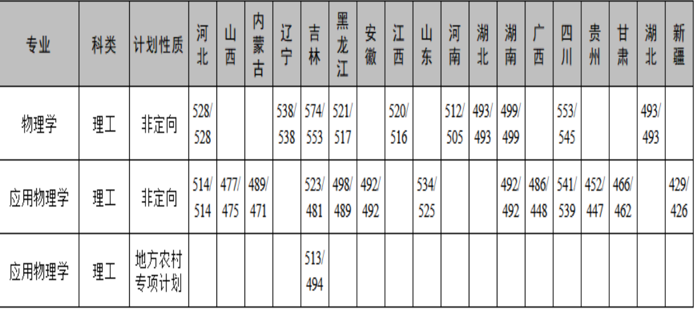 bat365平台官网物理学院2020年各专业录取分数统计表