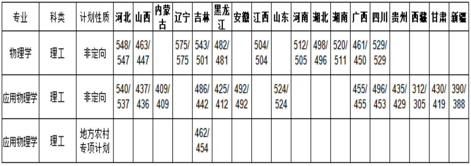 bat365平台官网物理学院2023年各专业录取分数统计表