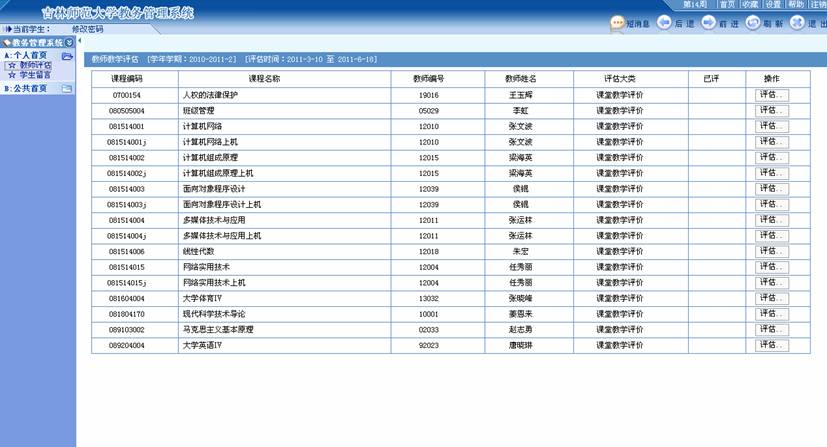 第二步,点击个人首页中的“教师评估”按钮进入评课界面,如图1所示: