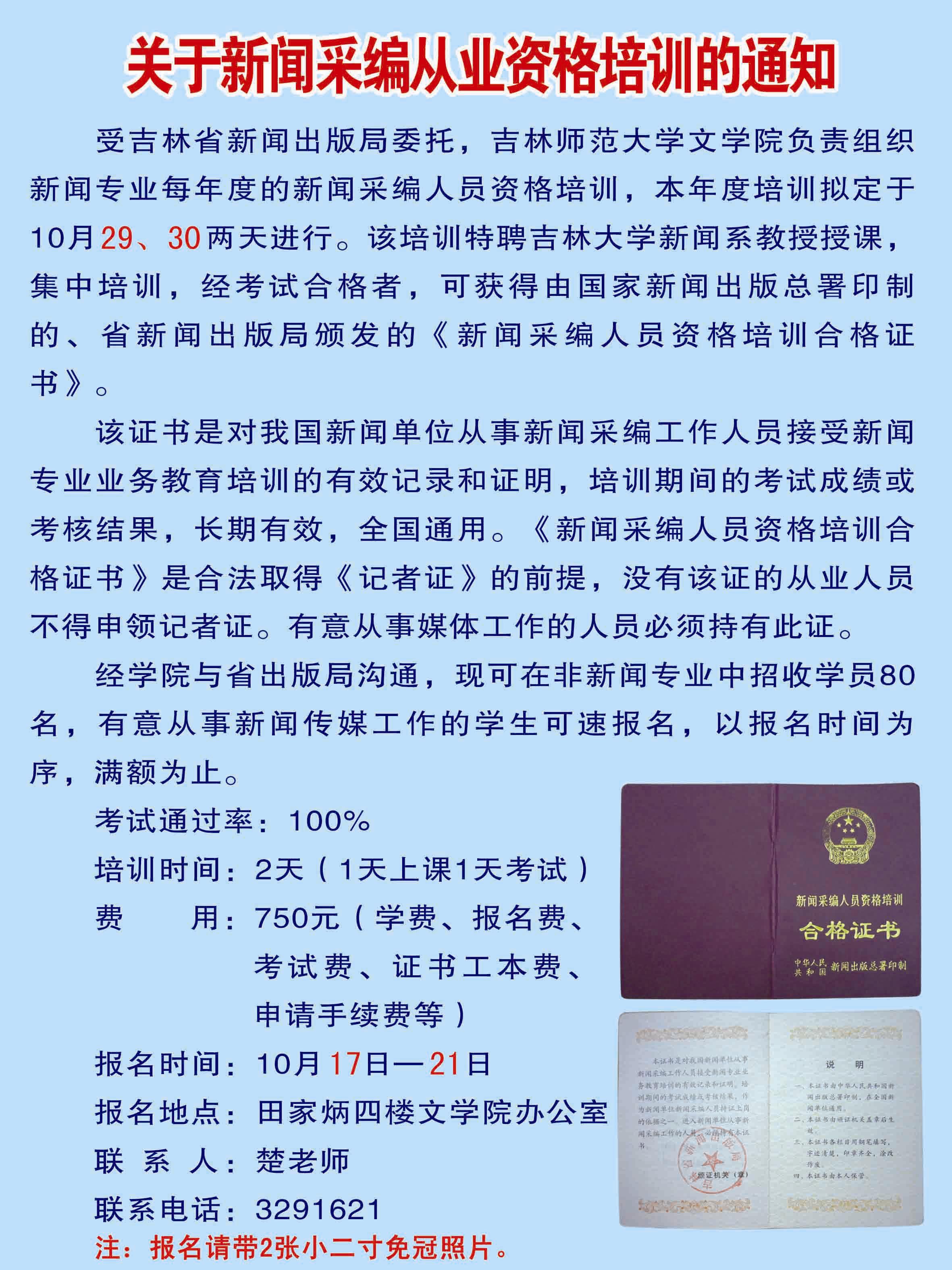 关于新闻采编从业资格培训的通知