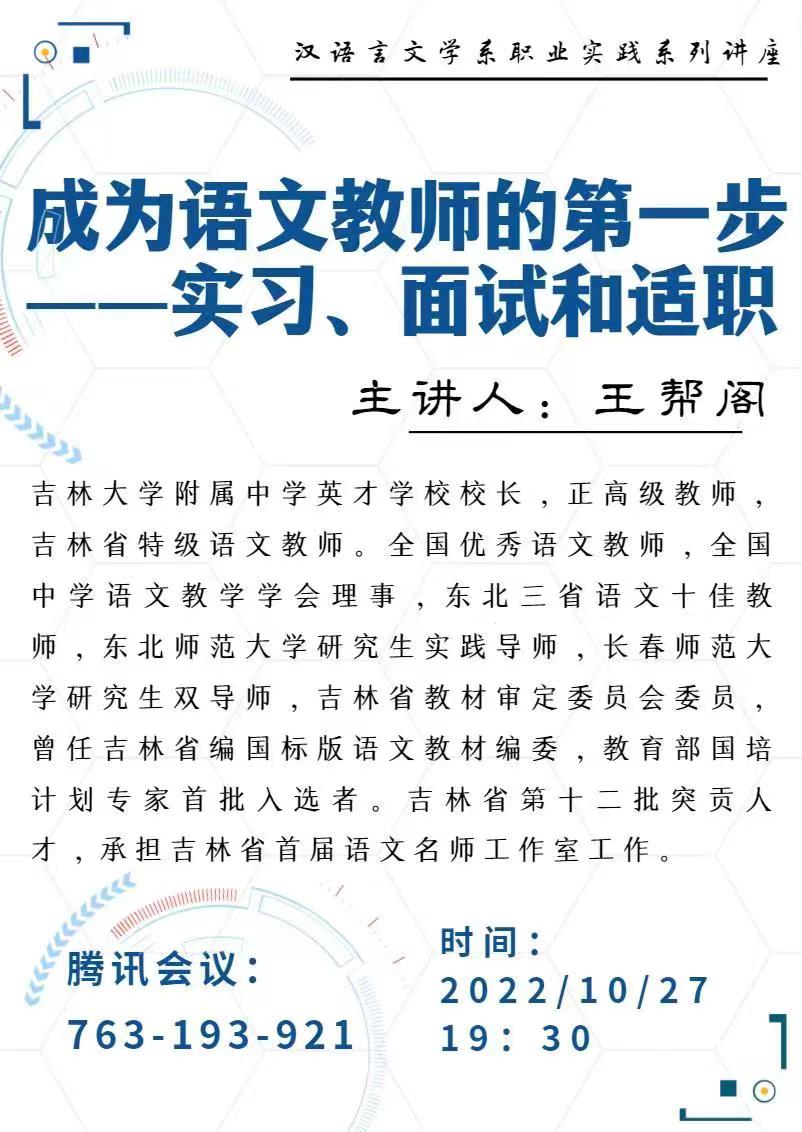 【讲座通知】成为语文教师的第一步——实习、面试和适职