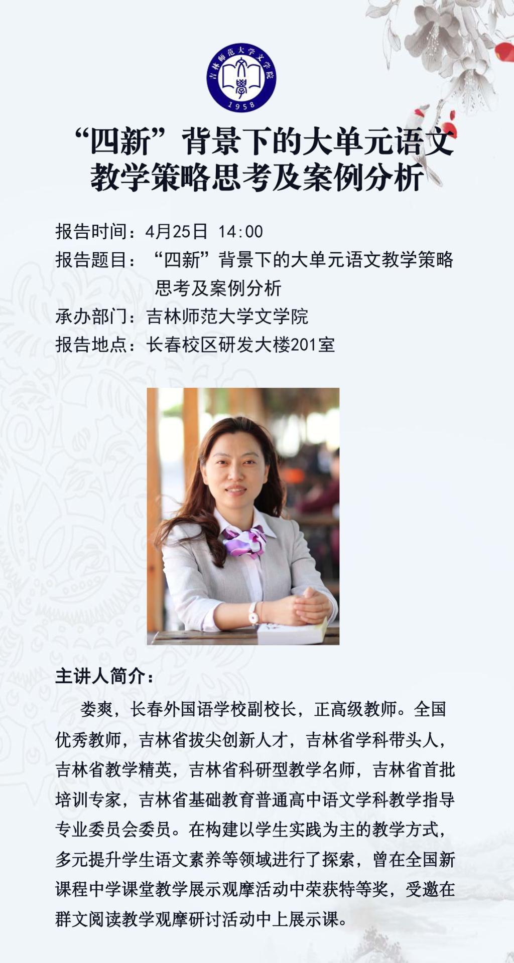 【讲座预告】 “四新”背景下的大单元语文教学策略思考及案例分析
