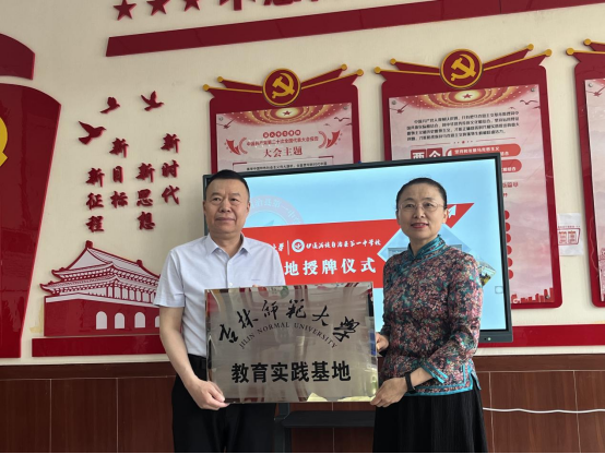 仪式最后,伊通一中党委书记苏景华接过了文学院院长孙艳红授予的实习基地标牌,并且签署了合作协议,本次活动圆满成功。