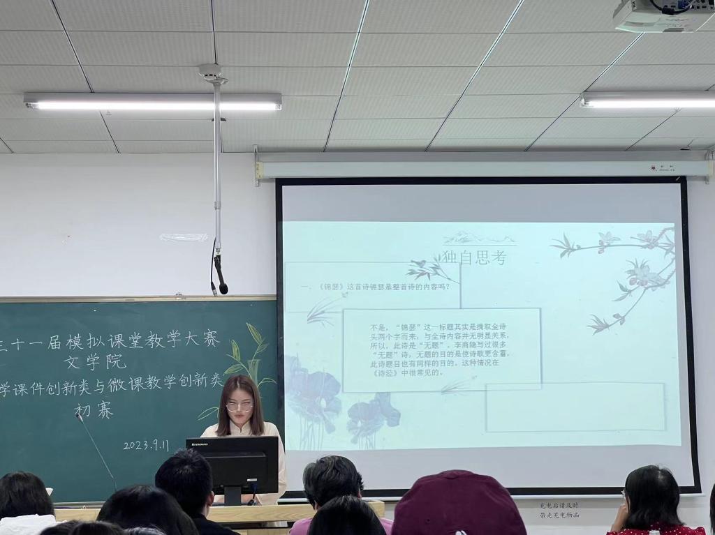 2023年9月5日至9月11日,文学院成功举办了bat365平台官网第三十一届模拟课堂大赛初赛。大赛全面落实深化创新创造教育改革、加强师范生创新创造教育目标,由文学院教师竞赛指导团队组织开展了教学设计创新类、教学课件创新类、微课教学创新类三个赛道的比赛。