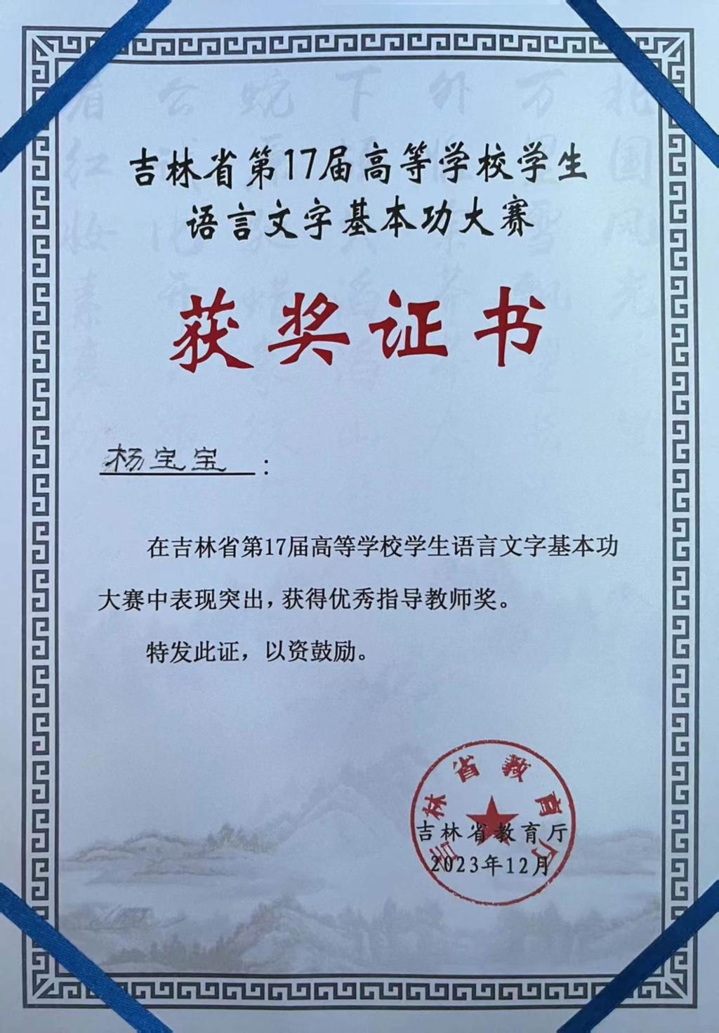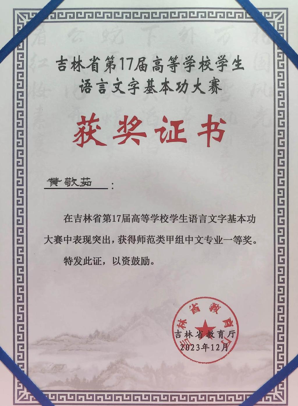 12月3日,由吉林省教育厅、吉林省语言文字工作委员会主办,吉林省普通话培训测试中心、吉林教育电视台承办的“吉林省第17届高等学校学生语言文字基本功大赛”,在bat365平台官网长春校区落下帷幕。在此次大赛中,bat365获得师范甲组团体一等奖。其中我院黄敬茹同学在本次大赛中表现突出,获得师范类甲组中文专业一等奖。我院杨宝宝老师荣获优秀指导教师奖。