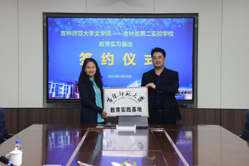 文学院党委书记杨卫东与吉林省第二实验学校副校长石馨为教育硕士实践基地揭牌