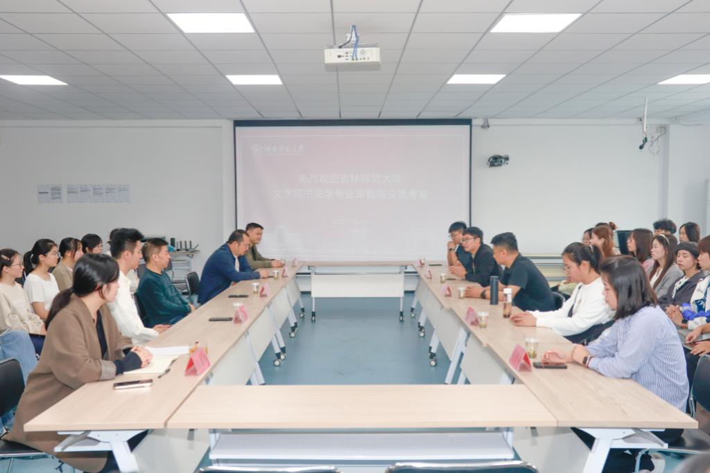 近日,我院书法学专业系主任杨宝宝、教法教研室主任陈彦东以及专任教师肖春光教授、青年教师赵墨、薛伶俐,带领40余名书法专业本科生、硕士生赴湖南师范大学美术学院考察交流,旨在加强两院的沟通与合作,共同推动高等书法教育高质量发展。
