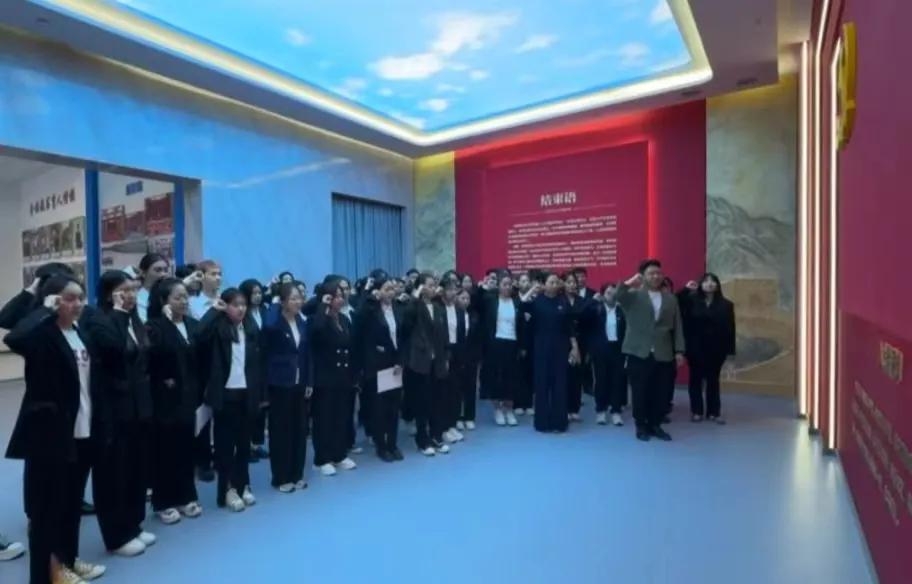 最后,全体党员一路跟随讲解员来到尾厅,在党旗下重温入党誓词。