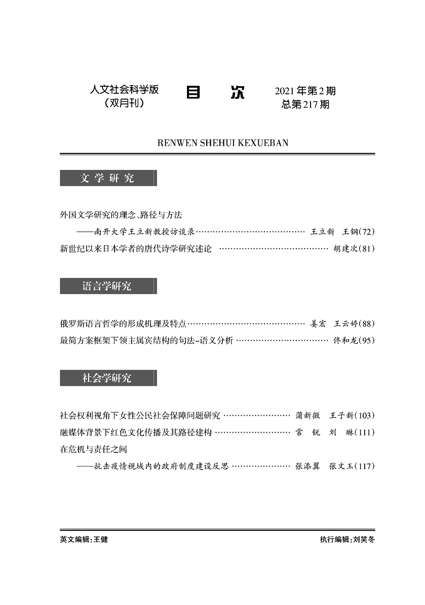 《bat365平台官网学报》(人文社会科学版)2021年第2期