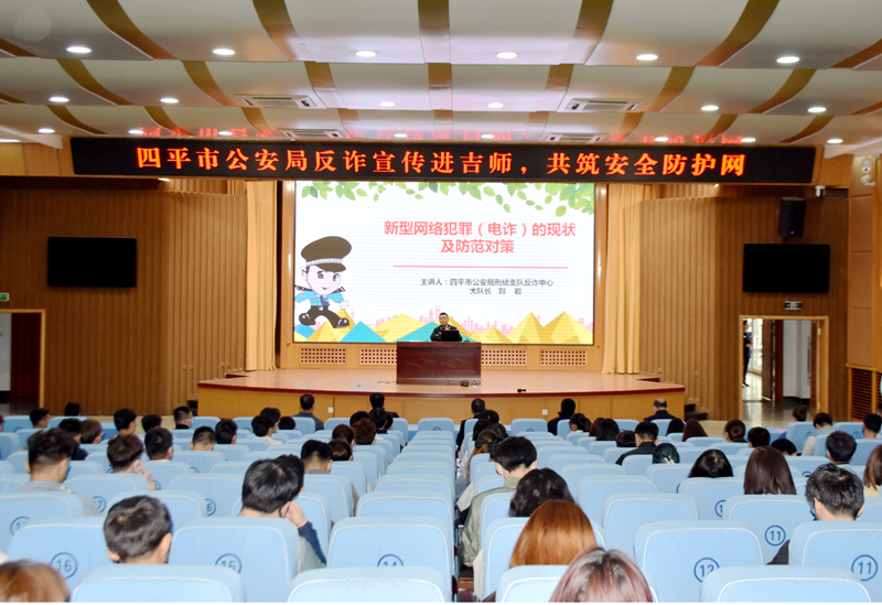 4月1日,学校联合四平市公安局在图书馆报告厅举办“反诈宣传进吉师,共筑安全防护网”专题讲座。讲座由四平市公安局刑侦支队反诈中心大队长刘岩主讲,各学院学生代表180余人参加。