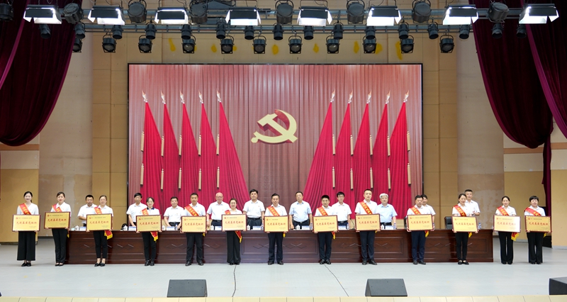 王喜库在讲话中代表学校党委,向受到表彰的先进集体和优秀个人表示热烈的祝贺,向奋斗在学校各条战线上的广大党员干部、师生员工,致以最诚挚的问候。他指出,一百年来,中国共产党矢志践行初心使命,团结带领人民开辟了伟大道路,建立了伟大功业,铸就了伟大精神、积累了宝贵经验,在中华民族发展史和人类社会进步史上写下了壮丽篇章。特别是党的十八大以来,以习近平同志为核心的党中央,勇立时代潮头,把握发展大势,进行了划时代的理论创新、实践创新,以全方位、历史性的成绩和变革,开创了中国特色社会主义伟大事业的全新局面。