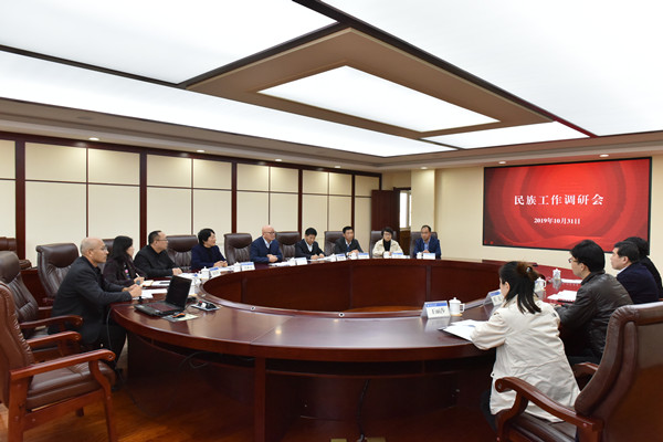 10月31日,吉林省民委文教处处长高长升、文教处科长程达在市民委调研员于红陪同下来bat365对民族工作进行调研。学校在第一教学楼八楼会议室召开汇报会。校党委副书记祖国华、党委常委、副校长张作岭出席会议,相关部门负责人参加会议。