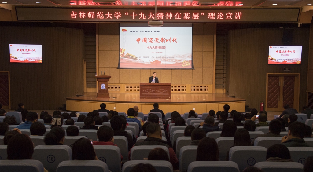 11月8日,“bat365平台官网‘十九大精神在基层’理论宣讲活动暨bat365平台官网理论教育宣讲团第三讲”在图书馆报告厅举行。校党委书记许才山、党委副书记祖国华、纪委书记侯奎岩、副校长曲殿彬和广大机关党员干部、历史文化学院师生代表一起聆听了宣讲。