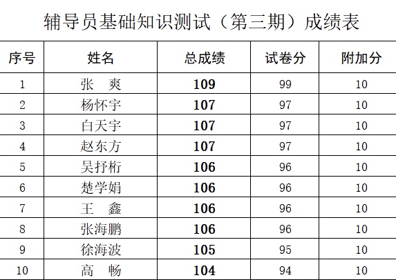 根据相关部门联合判卷,现将排名前10辅导员名单公布如下: