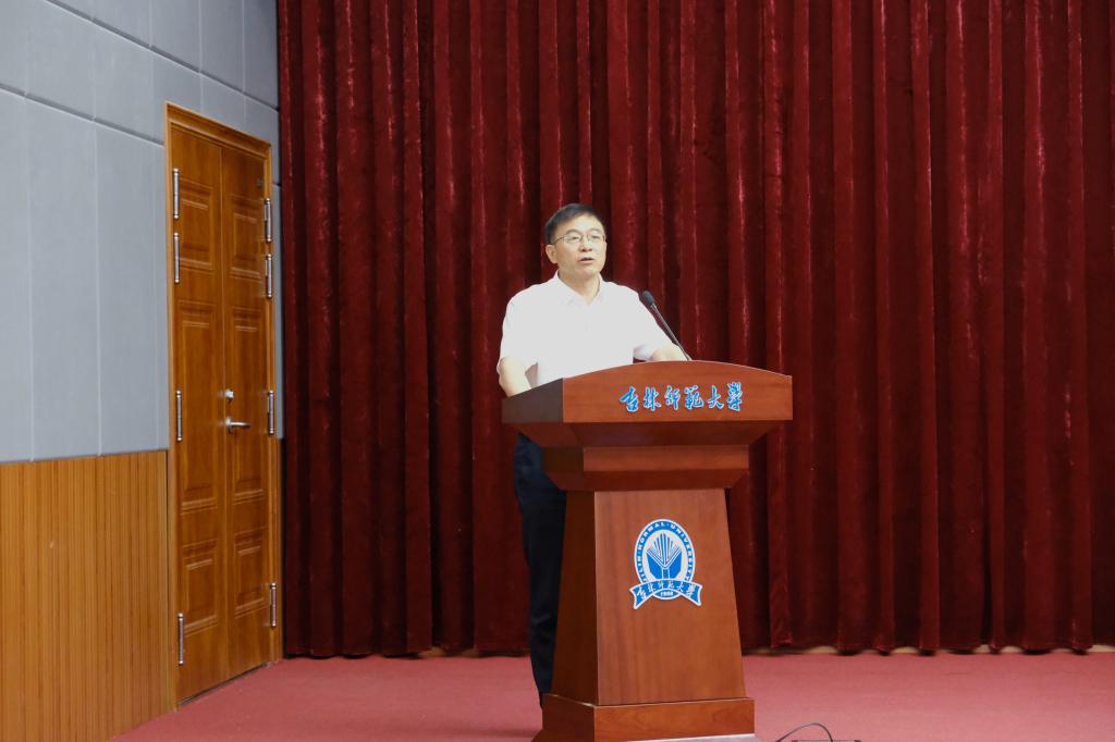 近日,学校在图书馆报告厅召开学工系统暑假工作部署会。党委副书记韩金玉出席会议并讲话,学工系统各职能部门负责人、工作人员及全体辅导员参加会议。会议由学生工作部(处)、研究生工作部(处)部(处)长韩强主持。