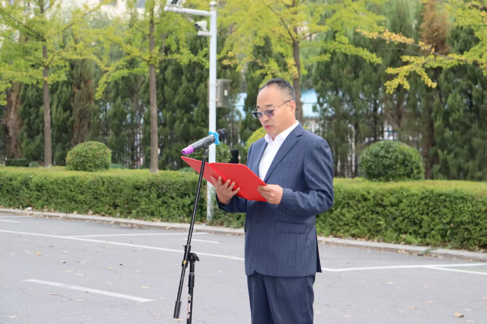 韩金玉发表讲话。他回顾了新中国成立76年来波澜壮阔的发展历程,指出中华民族迎来了从站起来、富起来到强起来的伟大飞跃,是无数中华儿女艰苦奋斗的结果。他强调,“我和祖国共成长”不仅是一代代中国人的生动写照,更是新时代青年学子的使命担当。他对全体同学提出三点希望:一要筑牢理想信念,与祖国同心;二要锤炼过硬本领,与祖国同行;三要勇担时代责任,与祖国共进。他鼓励同学们将“小我”融入“大我”,在服务国家、奉献社会中实现人生价值。
