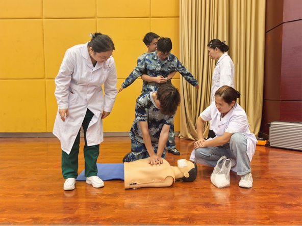 校医院林峰医生结合多年急救工作经验,采取理论讲解、案例分析和实操演示相结合的方式,为同学们系统讲解了心肺复苏、气道异物梗阻急救、创伤包扎等常用急救知识。