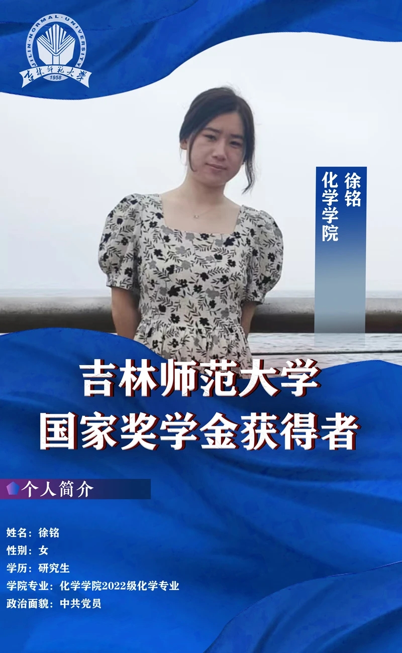 作为化学系专业的一名研究生,她紧紧跟随导师参与科研任务,阅读大量的文献期刊与老师确定研究方向,积极努力完成实验任务。并且从研一开始就参与组会,每周通过汇报实验进展与导师及时的沟通,更有效的完成实验任务与数据处理。研究生期间她以第一作者身份发表1篇SCI论文。