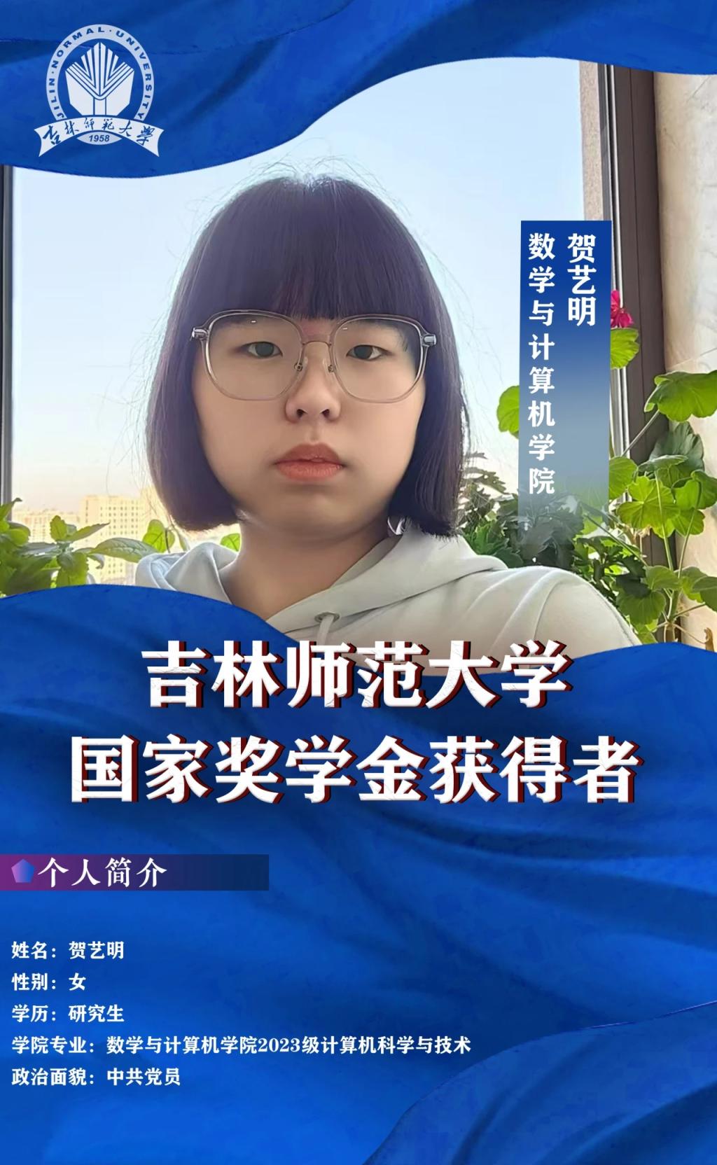 “如果信仰有颜色,那一定是中国红”。她在本科期间就积极向党组织靠拢,严格要求自己,成为了一名中共党员,所以在研究生期间更加能规范自我。在日常的学习、工作和实践中,不忘初心,不断提高自己的综合素质和能力水平,坚定理想信念、时刻保持对党的忠诚和对人民的热爱,努力为老师和同学做实事,为学校的发展贡献自己的力量。