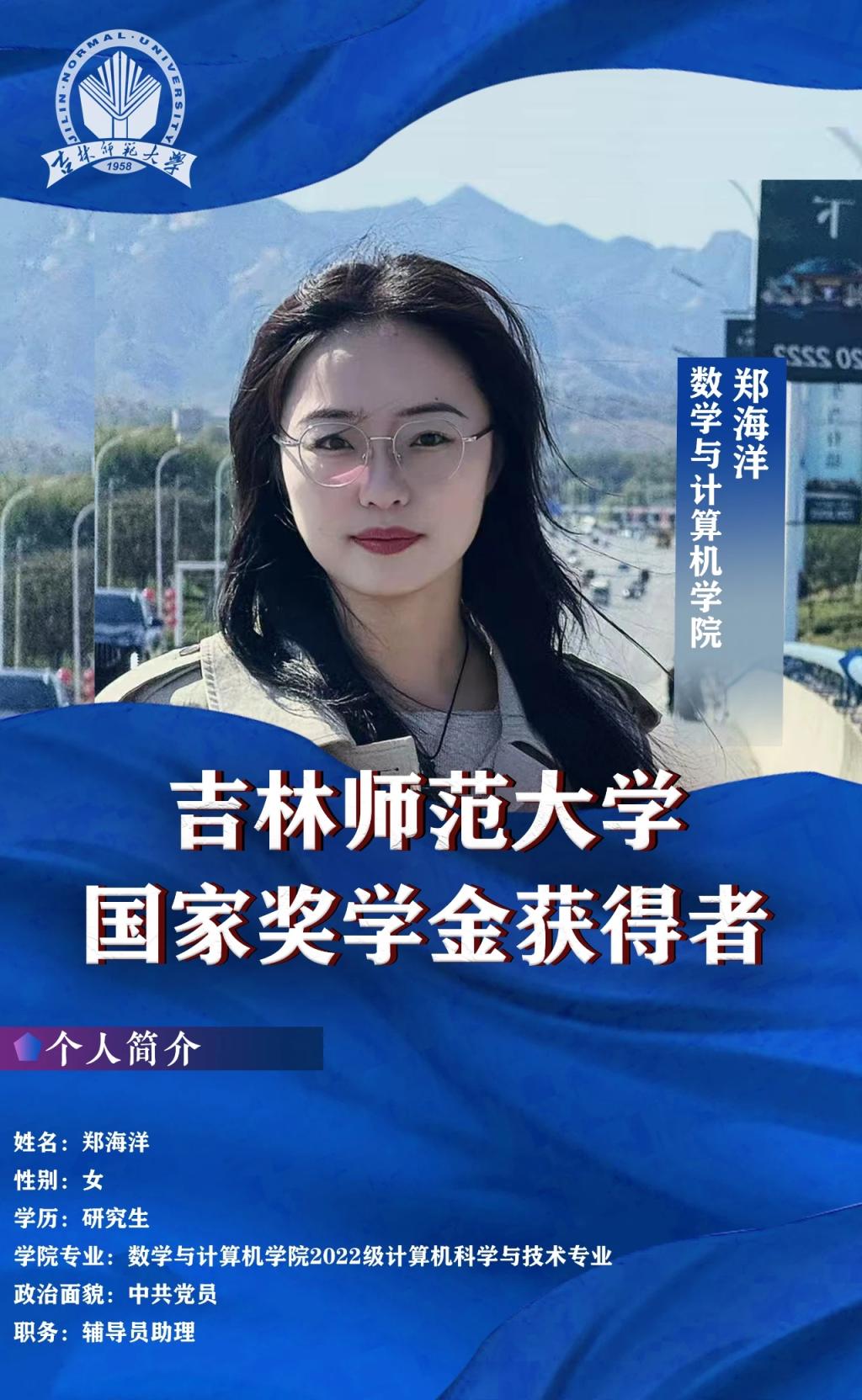 作为计算机专业的学生,郑海洋希望通过创新实践提升自身能力。在导师的指导和自身的努力下,以第一作者发表SCI论文及省级论文各一篇,参与发表SCI论文两篇。她常说:“只有将所学付诸实践,不断创新,才能真正实现自我的价值。”正是这种勤奋好学、勇于创新的精神,使她在学业和科研上取得了优异的成绩,成为同学们学习的榜样。