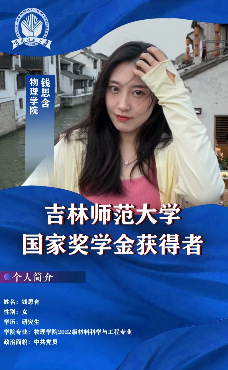 壮而好学,如日中之光,作为新时代硕士研究生,钱思含一直以“好学近知”的精神立足于时代使命,培养责任意识,强化知识体系,提升综合素养;更以“力行近仁”的准则不断培养社会责任感,积极参与社会建设,进而实现中华民族伟大复兴的历史使命,“好学近知,力行近仁”此非独母校校训,更如灵魂烙印,深植吉师人精神内核,化作砥砺奋进之磅礴力量,引领其于时代浪潮中勇毅前行,书写华章。