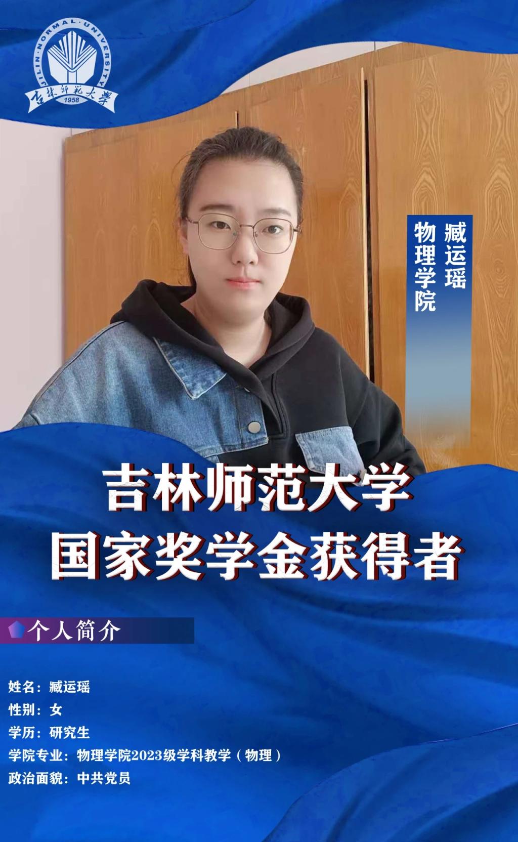 臧运瑶同学自进入研究生阶段以来,始终以严谨的态度、饱满的热情投入到学习、科研和实践中,展现了新时代研究生勤奋刻苦、勇于创新的精神风貌。她不仅在学业上取得了优异的成绩,还在科研创新、学科竞赛等方面表现突出,用实际行动诠释了“踔厉奋发,笃行不怠”的奋斗精神。