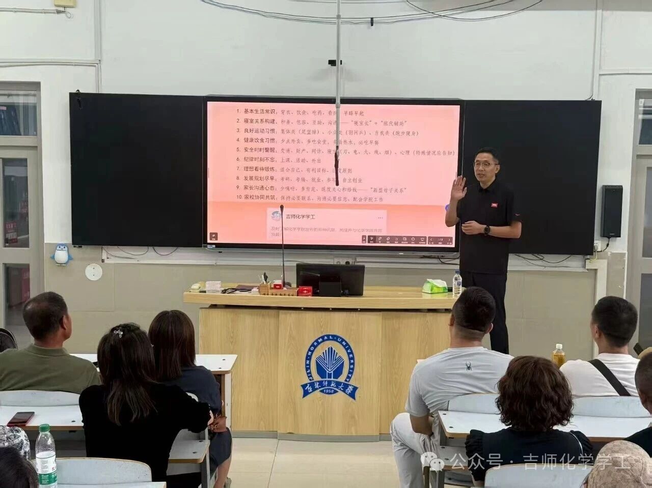 2025年8月30日,化学学院召开新生家长会,学院党委副书记孟令权、辅导员朱春萌,以及25级新生全体家长参加。