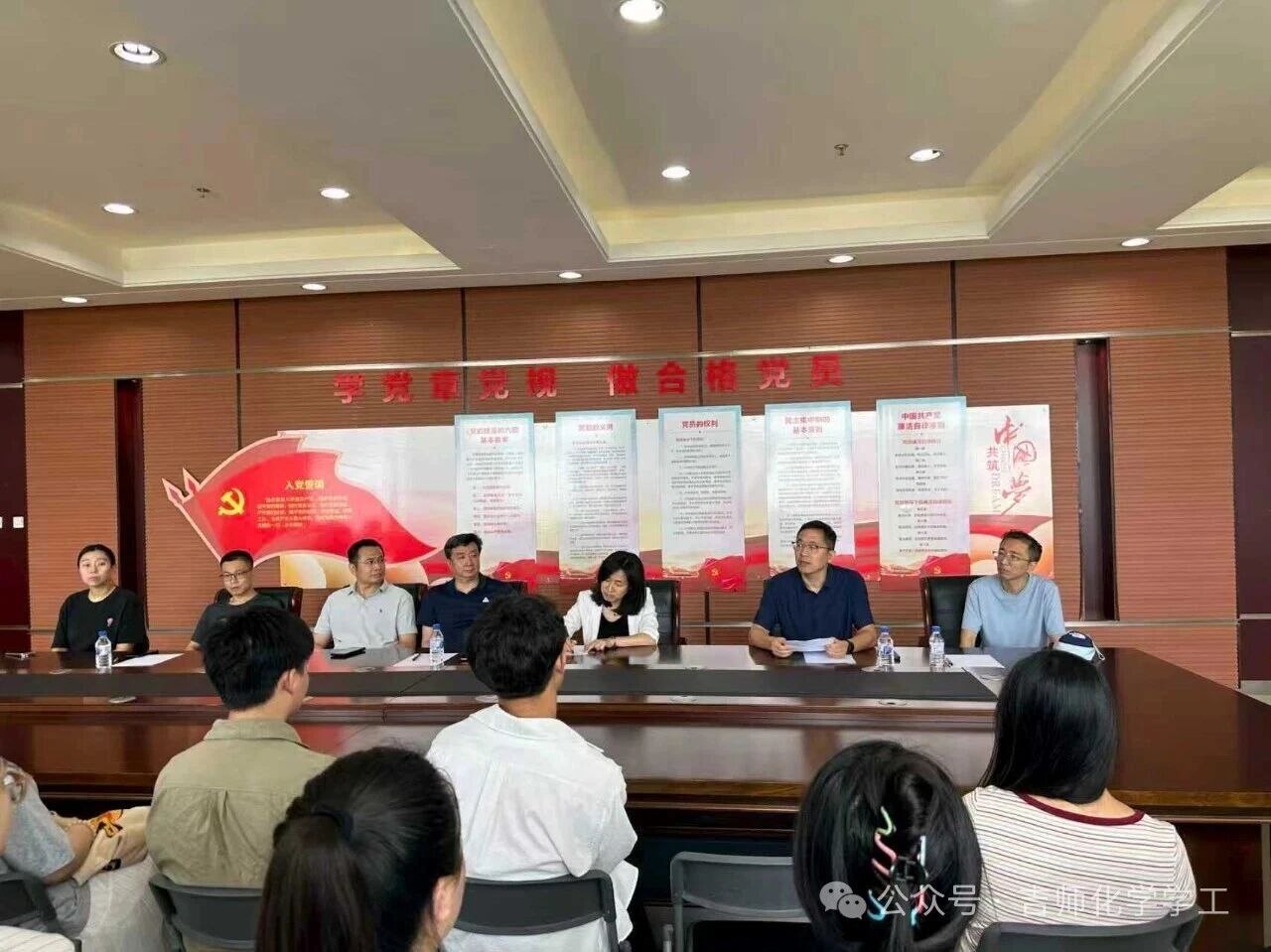 学院党委书记郭强、院长赵丽娜、党委副书记孟令权、副院长崔克宇、刘玉村,环境友好材料制备与应用教育部重点实验室副主任刘博、兼职辅导员张雨薇等参加。会议由党委副书记孟令权主持。
