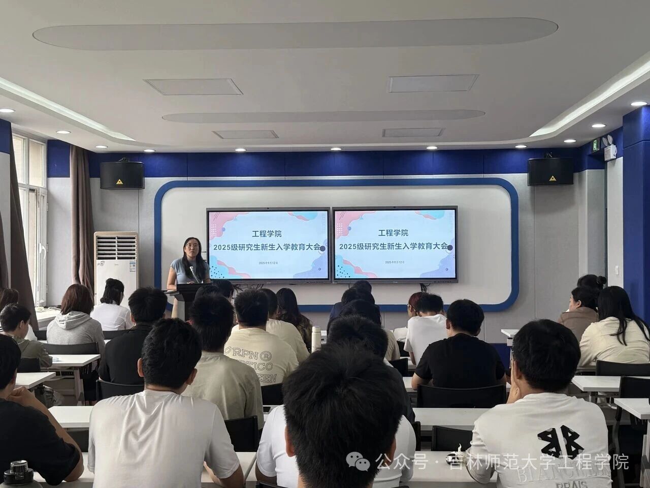 金秋时节,工程学院于2025年9月12日在5503会议室举行2025级研究生新生入学教育大会。大会旨在帮助新生适应研学生活、明确学术目标、树立学术道德,工程学院领导与全体新生参与本次会议。