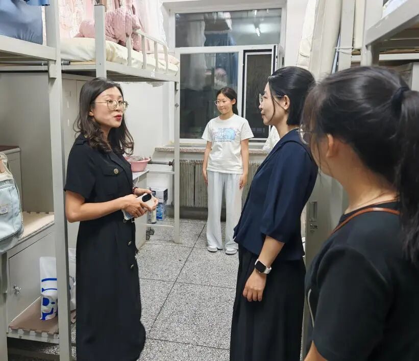 老师们满含关切与热忱逐间走进宿舍,一方面细致检查宿舍基本设施,从水电运行到生活配套,确保每一处细节都完善无缺;另一方面,他们与新生亲切交谈,耐心询问大家的生活需求,关心新同学对校园环境、集体生活的适应情况,用温暖的话语驱散新生初来乍到的陌生感。