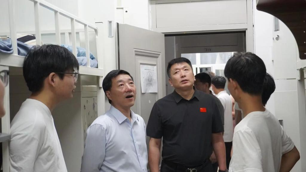 为助力新生快速融入校园环境,进一步推进“青心护航”育人工程。近日,党委书记许英魁、院长汪津、副院长王国峰、黄涛、党委副书记张维微、团委书记靳妍钰、辅导员缐宇峰、袁宇、王思博来到第十学生公寓、第六学生公寓走访新生宿舍,为2025级新生答疑解惑。