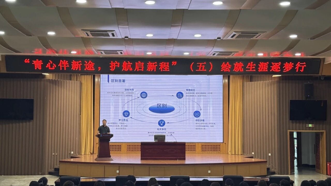 讲座伊始,徐老师以“大学与高中的差异”为切入点,通过轻松的互动迅速拉近与新生的距离,舒缓了现场的紧张感,进而自然引出“绘就生涯逐梦行”的讲座主题 。