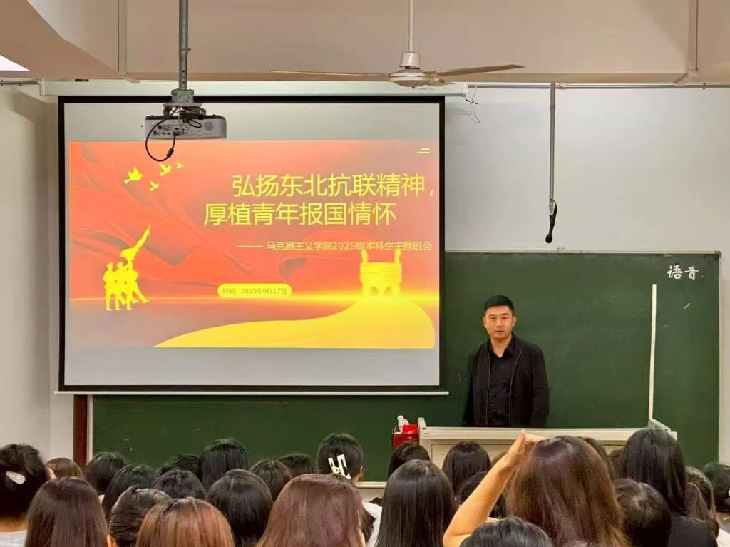 为引导学生深入学习东北抗联精神,弘扬爱国主义传统,筑牢理想信念根基,9月17日,我院分团委书记兼辅导员马荣陆在田家炳教育书院分别为2025级本科生与研究生召开“弘扬东北抗联精神 厚植青年报国情怀”主题班会,鼓励我院学子传承红色基因,勇担时代使命。