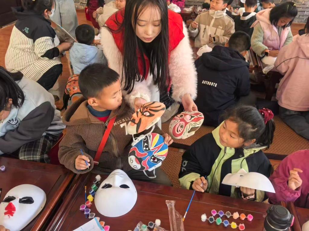 脸谱绘画:脸谱绘画环节,志愿者耐心指导,小朋友们拿起画笔,在白色面具上勾勒线条、填充色彩,一张张色彩斑斓、神态各异的脸谱逐渐成型,成为独属于自己的传统文化“纪念品”。