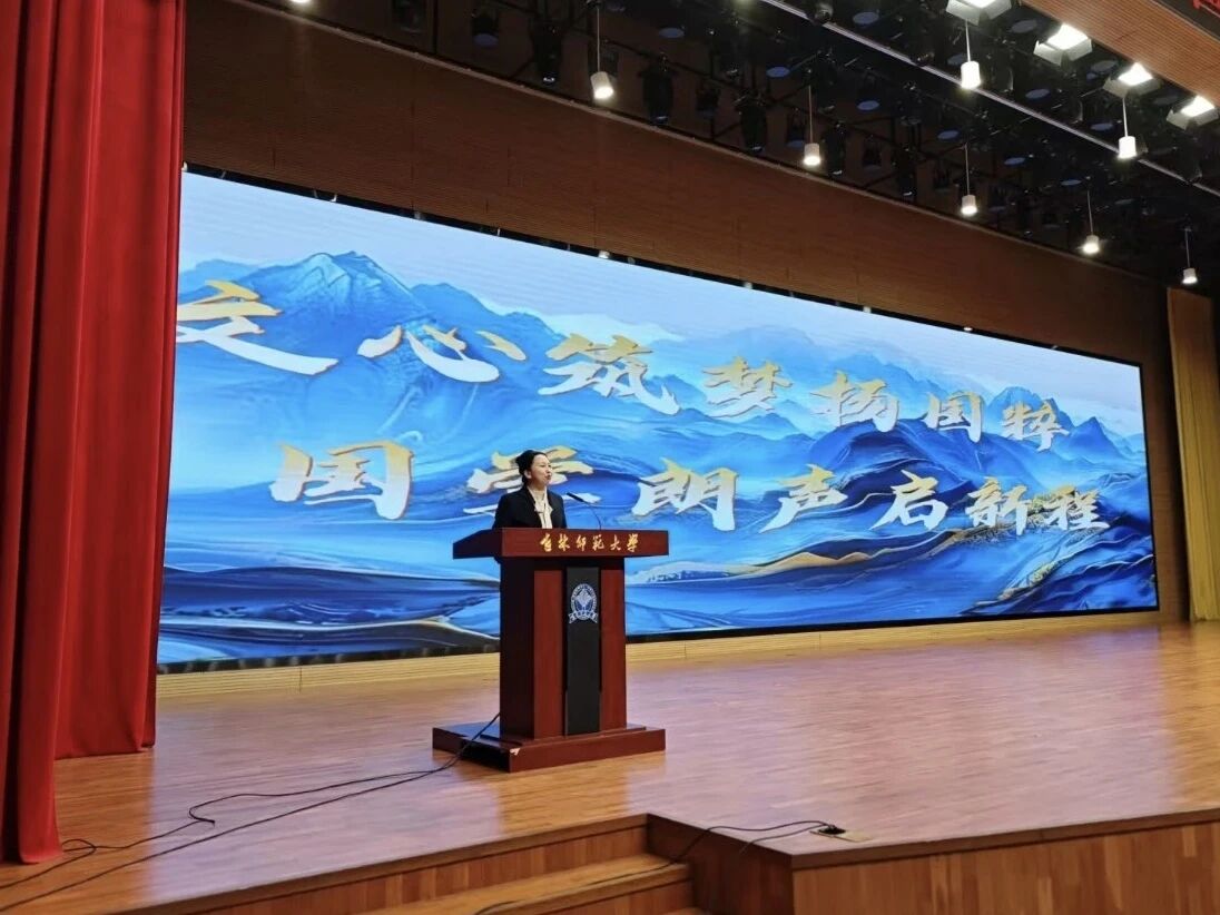 文学院党委副书记高畅致辞。她勉励师生以声传情、肩负起传承弘扬中华优秀传统文化的时代使命。随后,展演在动人的旋律中正式开启。