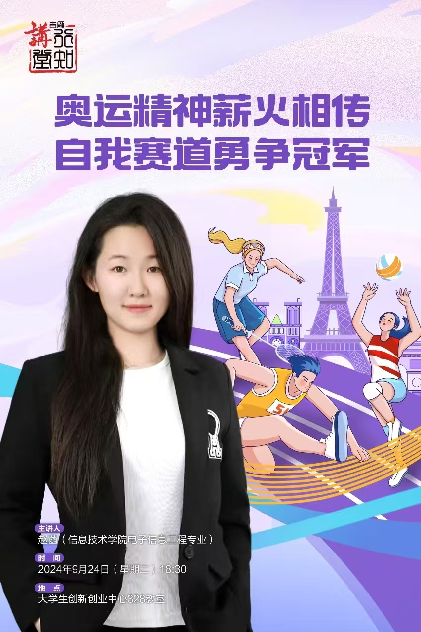 近日,“吉师行知讲堂·学生讲堂”第104期《奥运精神薪火相传 自我赛道勇争冠军》在大学生创新创业中心328室举办。信息技术学院电子信息工程专业赵菡同学担任主讲,陈琛...