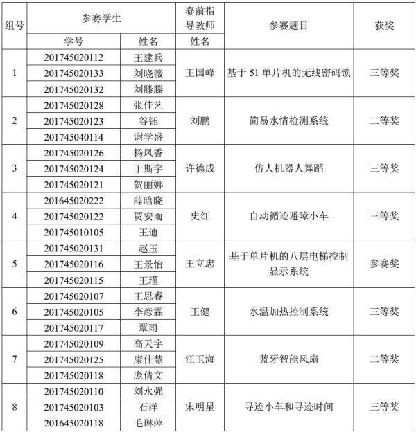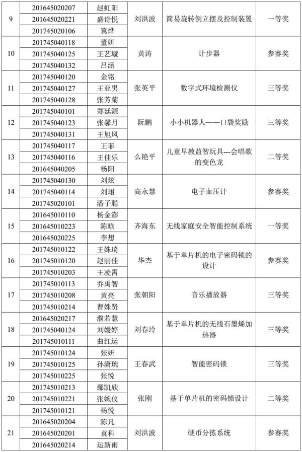 本次比赛共有21支队伍参加。所有参赛作品均进行了现场展示和功能介绍。经过激烈的角逐后,现场获评一等奖2项,二等奖4项,三等奖10项。具体获奖名单如下表。