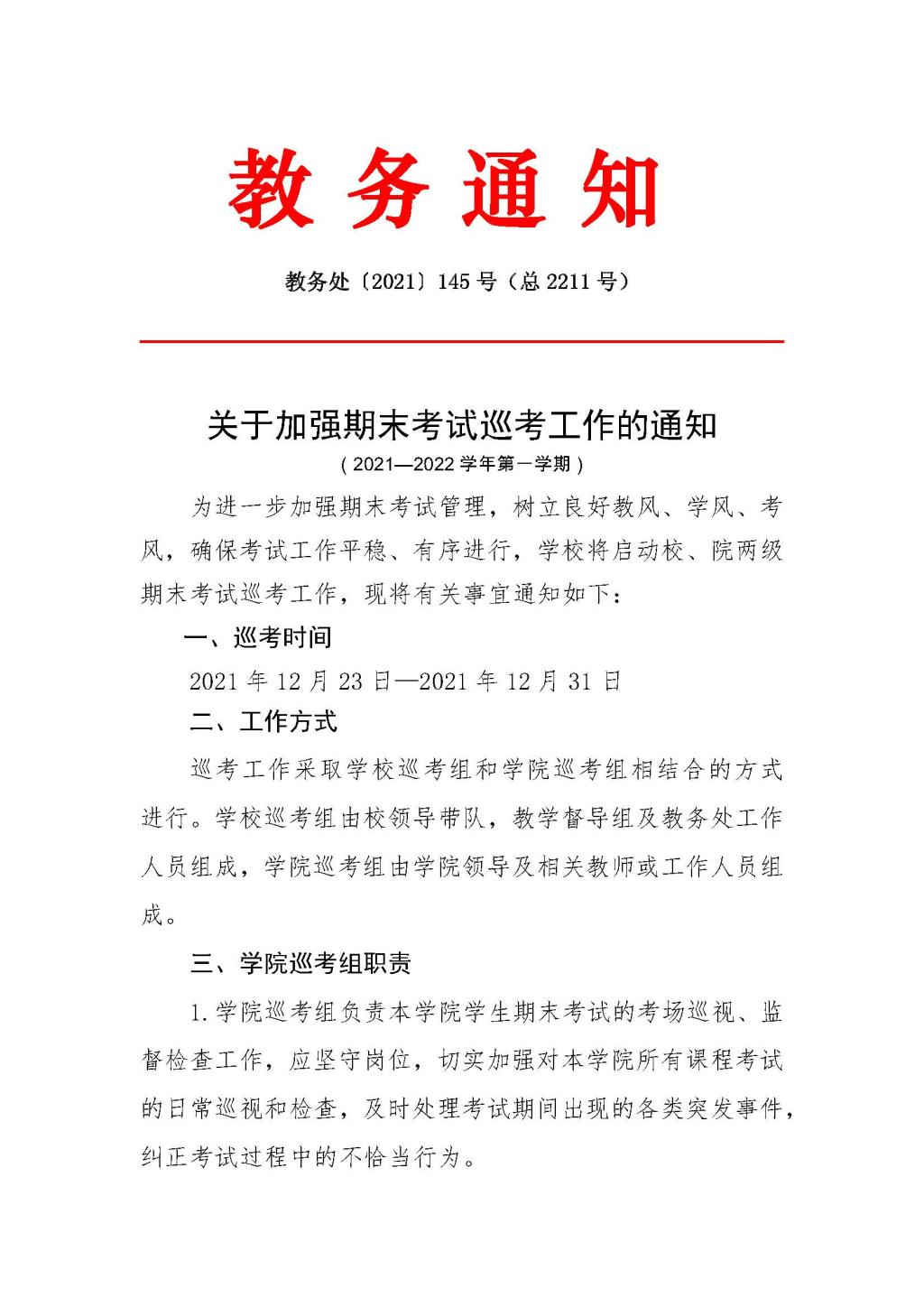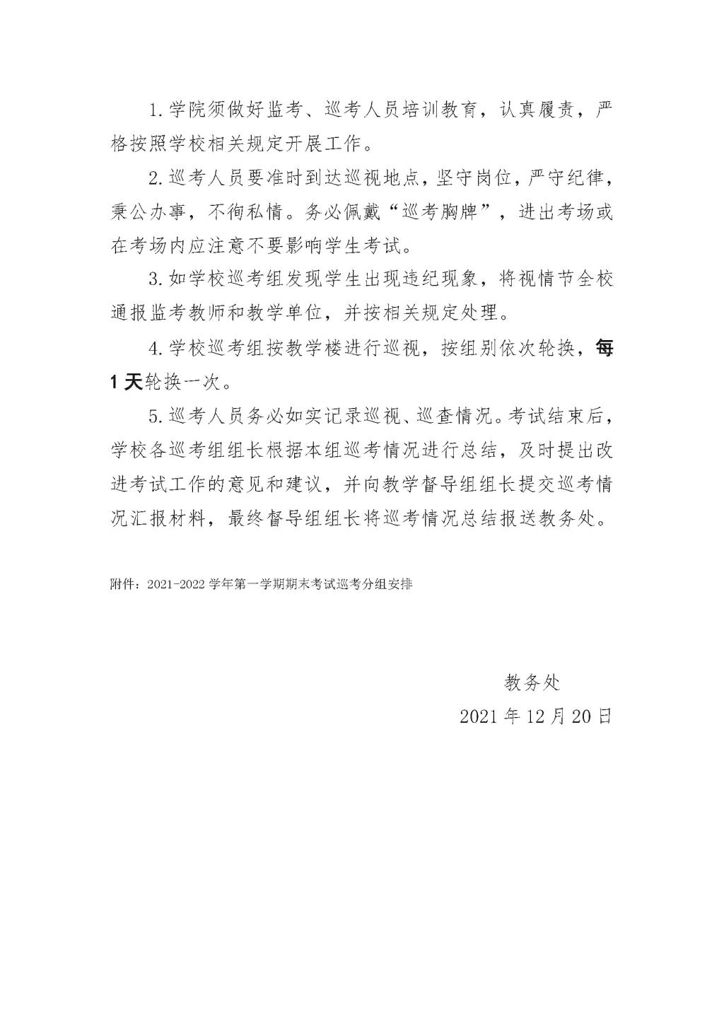 关于加强期末考试巡考工作的通知(2021—2022 学年第一学期)