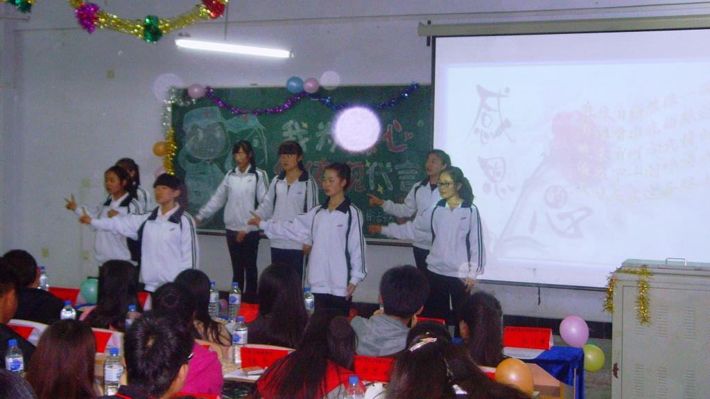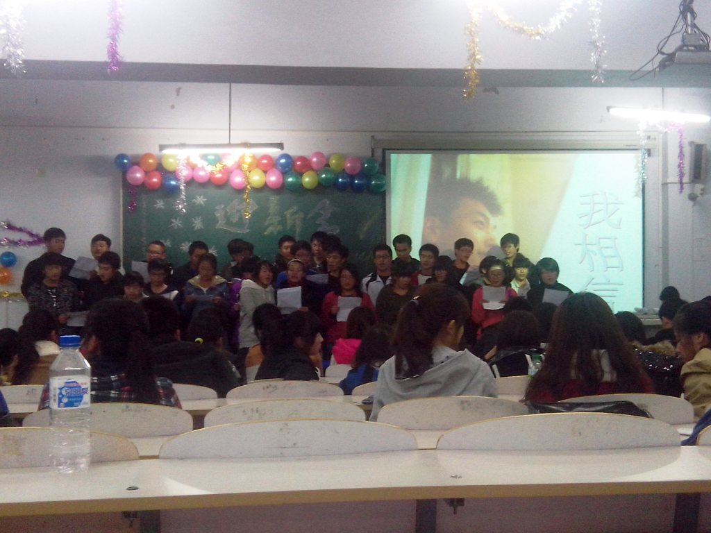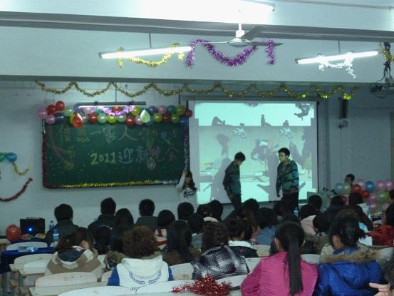 为欢迎2012级新同学,我院于10月26日晚举行了一场主题喜迎十八大——迎新文艺晚会,迎新晚会群星灿烂、激情荡漾,是一个师生同乐的不凡之夜。一首《月光》带给我们情怀;《下一站天后》也是绕梁三日。《还钱》的小品,激发了人性潜在的光辉。流行的《江南style》舞蹈更是引发了晚会的高潮,许多精彩节目都带给了大家美感享受,观众的掌声更是接连不断。